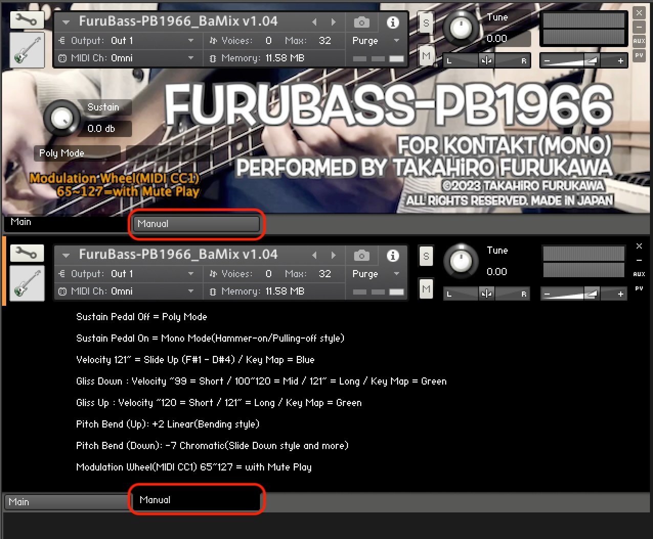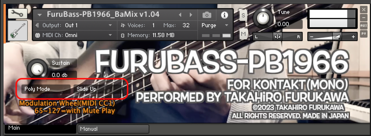 FuruBass-PB1966 was sampled from an original 1966 vintage Precision Bass, recorded using the exact studio gear and recording workflow that Japanese bassist, composer, and arranger Takahiro Furukawa uses in real-world recording sessions.
